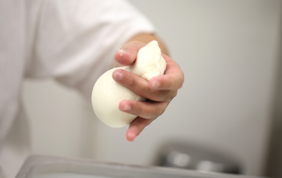 Scamorza是莫札瑞拉mozzarella的親戚,發跡於義大利南部Calabria一帶,是紡絲型乳酪(Pasta Filata)家族的一員,這類乳酪的凝乳在製作過程有經過牽扯拉長(stretched),所以起司煮起來牽絲效果好。